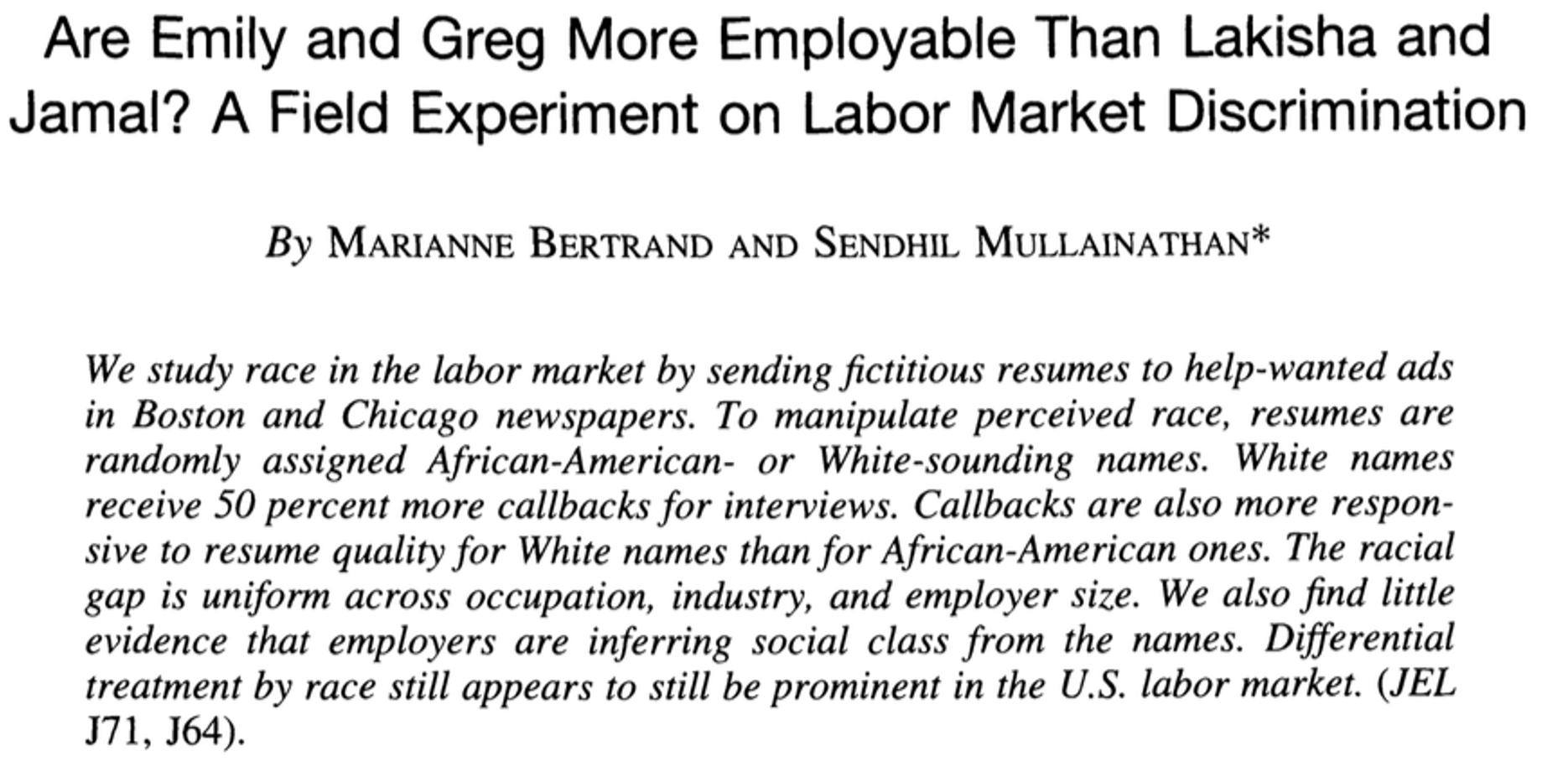 How big of an effect can this be? In a seminal paper Marianne Bertrand and Sendhil Mullainthan did an experiment to quantify real-world discrimination.