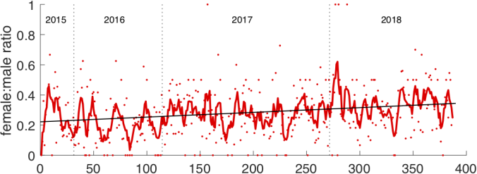 There’s some evidence that this work is paying off. In 2018 Bias Watch Neuro reported a significant increase in the representation of women at neuroscience conferences. The average is still under 50%, but the trend is upwards …