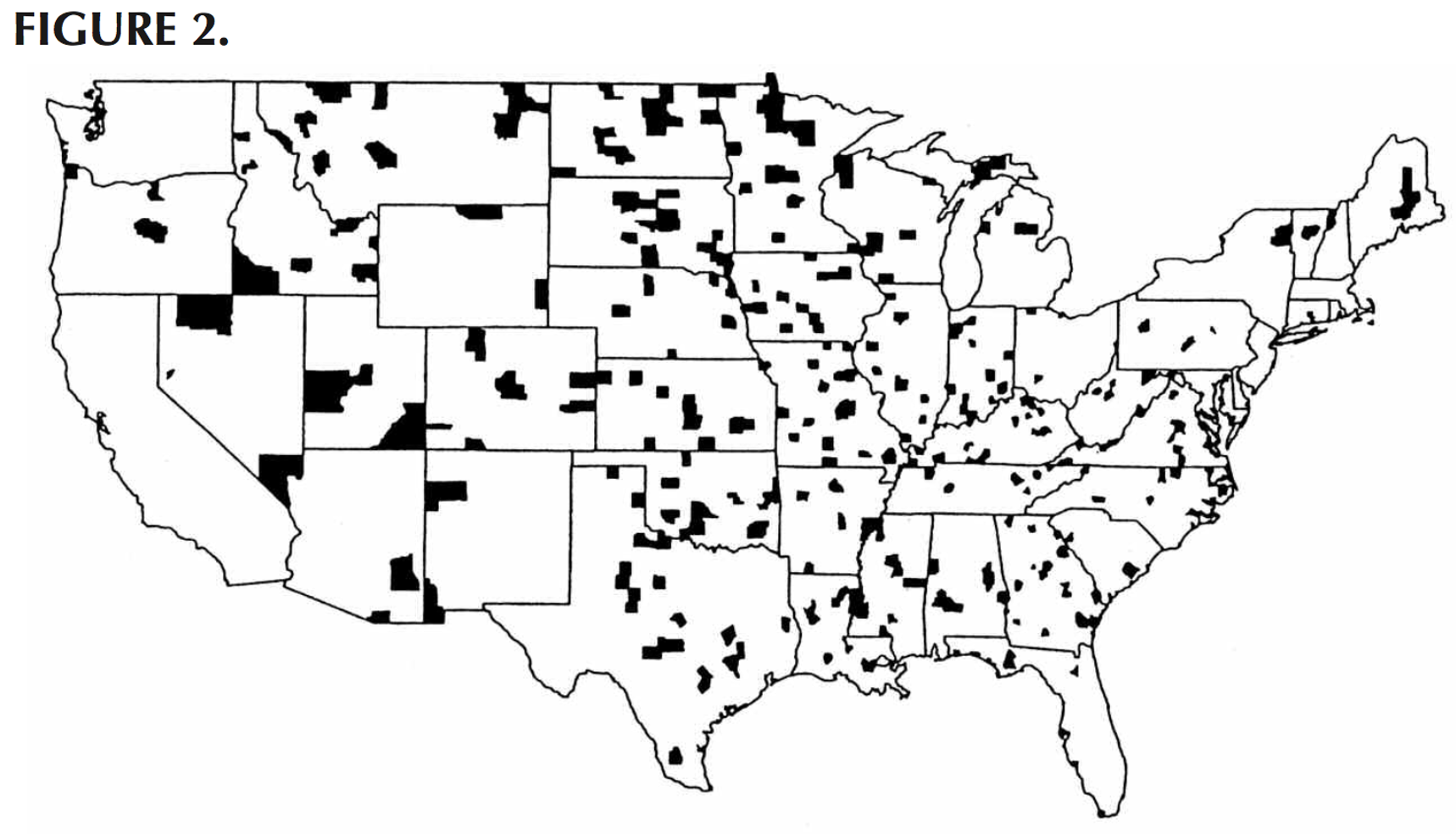 Now let’s look at a real-world case. Take a look at this map of areas with the highest rates of kidney cancer in the US. Looking at these you might notice that they are largely rural and in Republican areas of the country.