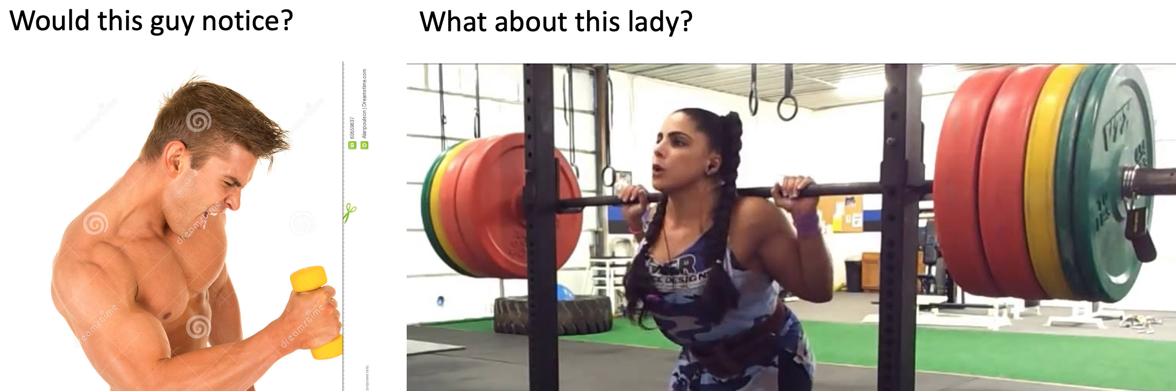 In particular, Weber was interested in the smallest possible change in weight that you would notice. And how this changes as a function of the original weight you were lifting. To get an intuition imagine these folks in the gym. Do you think they would notice if I added 1 pound to the weight they were lifting?