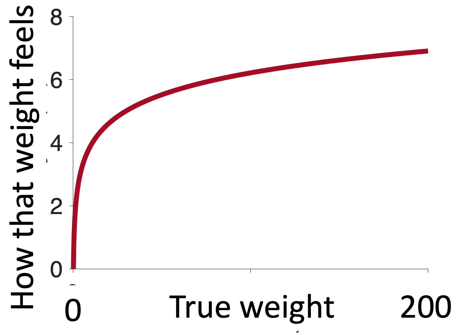 This means we become less sensitive to changes in weight the bigger the weight is. Which, if you do the math, or simply think hard enough about it, leads to a concave curve for the perception of weight.